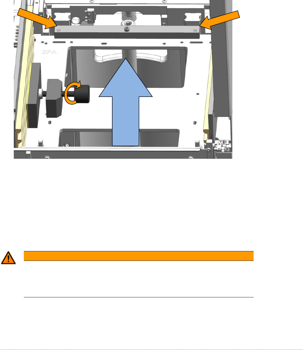 • Drücken sie, während sie die Klemme festziehen, die Lehre vorne an die Führungsschienen,