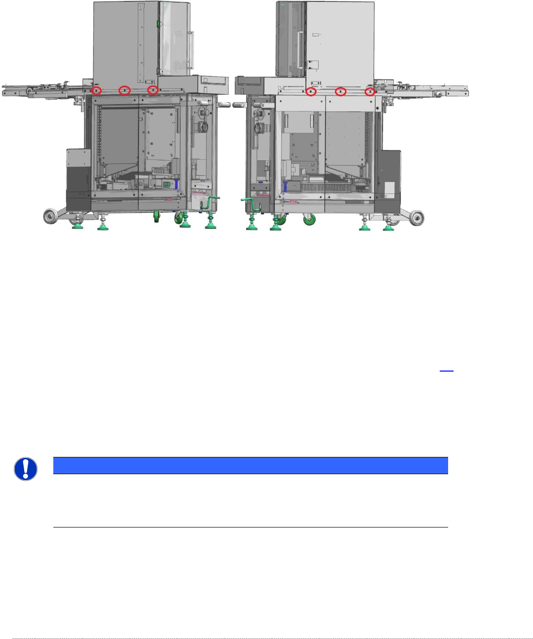 Interne Serviceanleitun g WPC5 / WPC6 Seite 5-160 5.5.5 Einstellen der Abfrageleiste (Führungsleiste oben hinten) Abbildung 21 : Befestigungsschrauben Turm am WPC Grundgestell. HINWEIS Einsatz von 2 Grundp latten Beson…