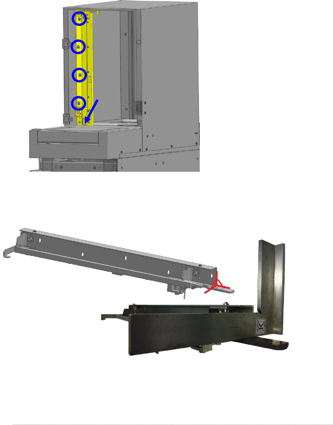 Abbildung 23: Abfrageleiste (Führungsleiste) hinten, oben, untere Position einstellen, 0,2mm.
