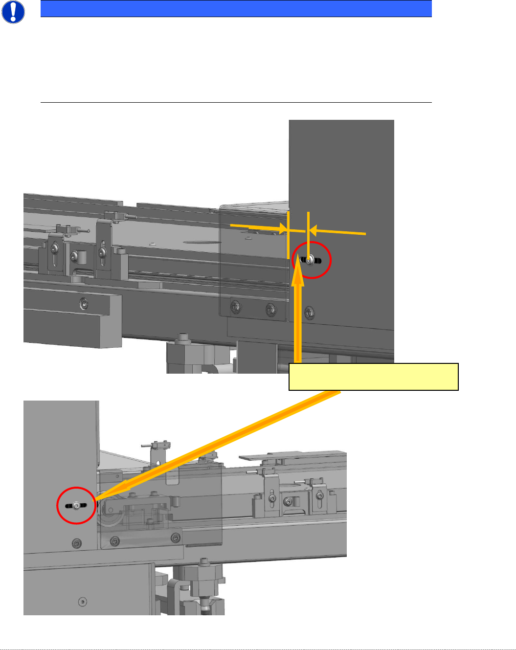Interne Serviceanleitun g WPC5 / WPC6 Seite 5-165 Verschieben S ie wenn nötig die L ichtschrank e indem sie die oben m ark ierte Schraube an der Seite der Turmhaube lösen. HINWEIS Position Crash-Licht schranke Achten S…