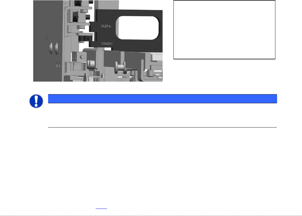 ➢ Entfernen Sie an der linken Seite der Zuführachse die schwarze Kunststoffführung, damit