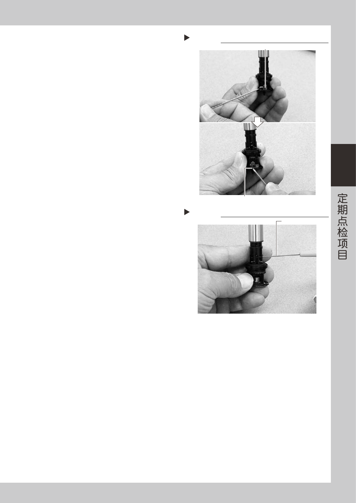 3. 在按下凸轮的状态下转动大伞齿轮,检查小伞