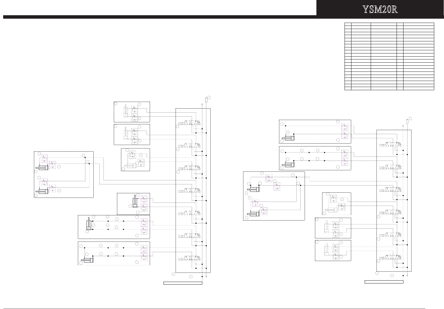 1.本図は YSM20R-2 (KMK 2ビーム) DS左流れコンベアの空気圧回路図である。