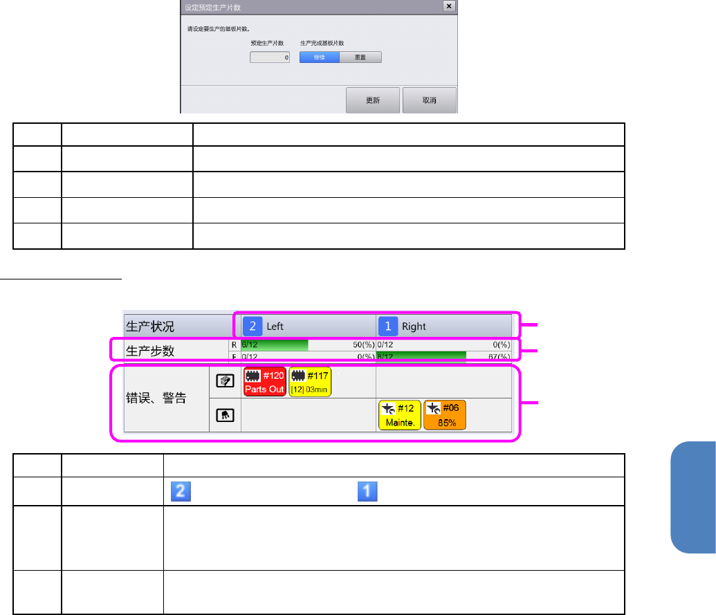 两者的单元中停止生产时,触摸[设定预定生产片数],即显示[设定预定生产片数]对话框。有关详细情况