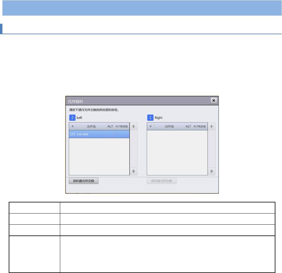 调出元件交换对话框,以开始对发生无元件的供给部进行元件交换。