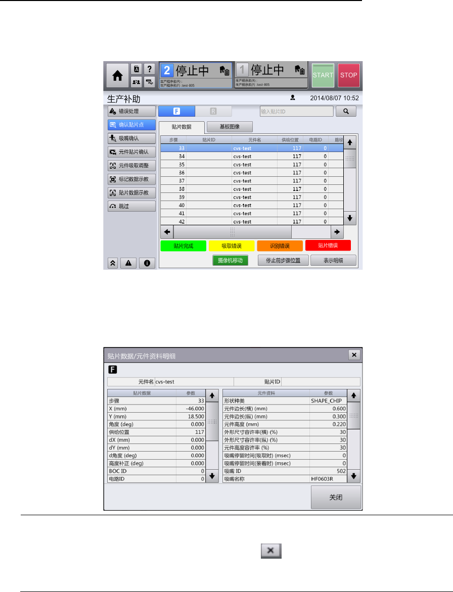 • 触摸[摄像机移动],将摄像机移动到选中步骤的贴片位置上,在[摄像机操作]对话框中显示图
