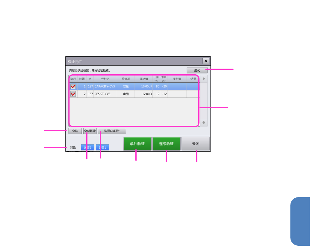 对选择供给位置列表中执行勾选标志为 ON 的所有元件(供料器的位置),连续执行验证检查。