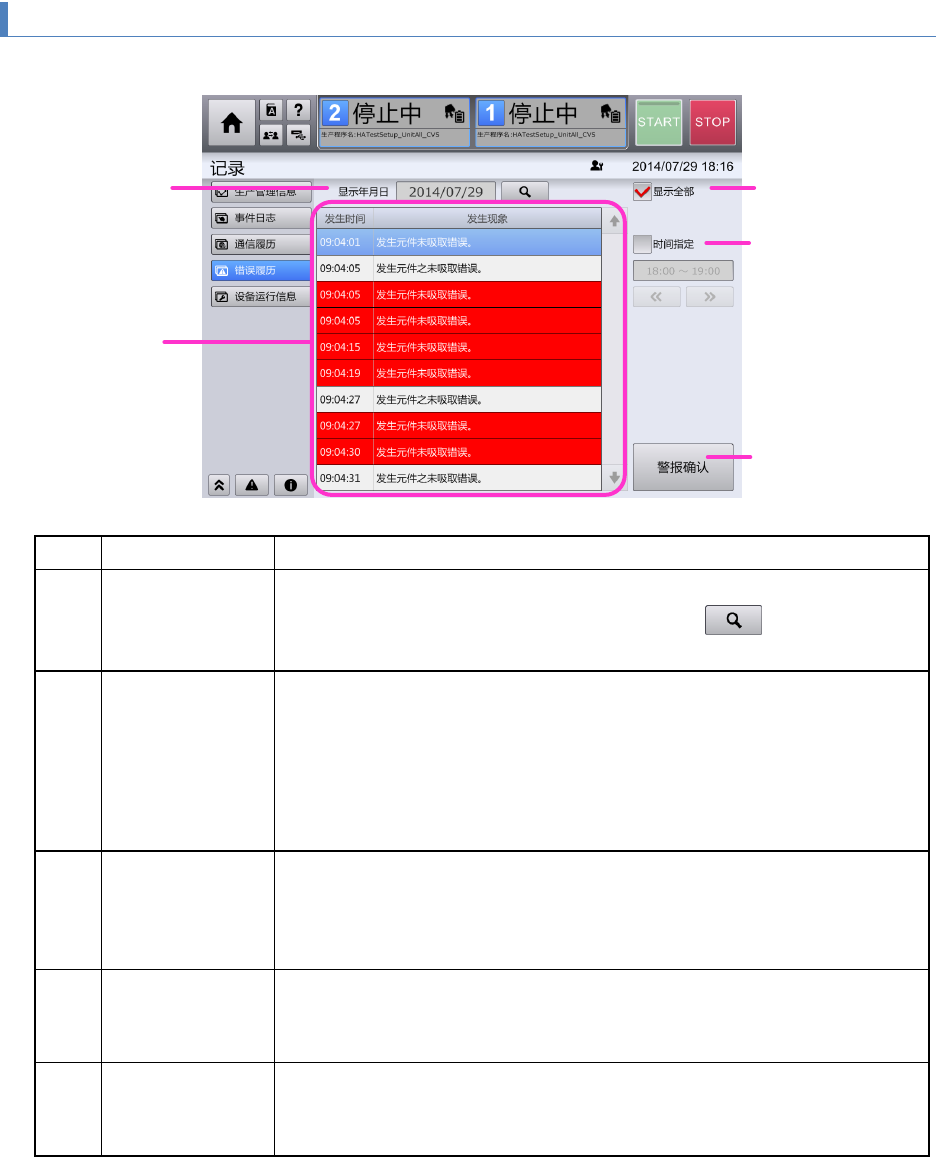 • 事件:显示机器的启动,结束,生产程序切换等用户操作信息,