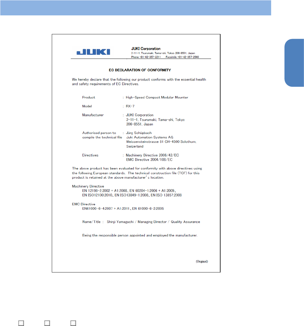 符合有关CE标记的EMC指令及产品安全的认证代理人为:Juki Automation Systems AG(地址: