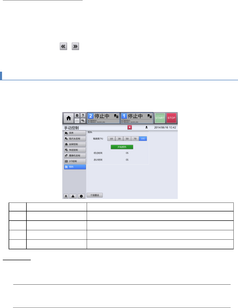 [预热]画面仅在用户级别为[MAINTENANCE(维护)]时才会显示。