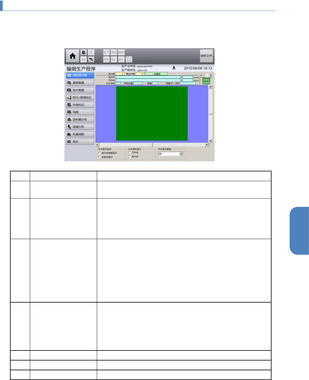 触摸[编辑生产程序]画面左侧的子菜单面板中的[基板显示器],显示[基板显示器]画面。