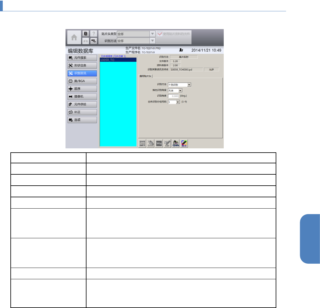 可显示和编辑本机元件资料库中记录的元件资料之识别参数。