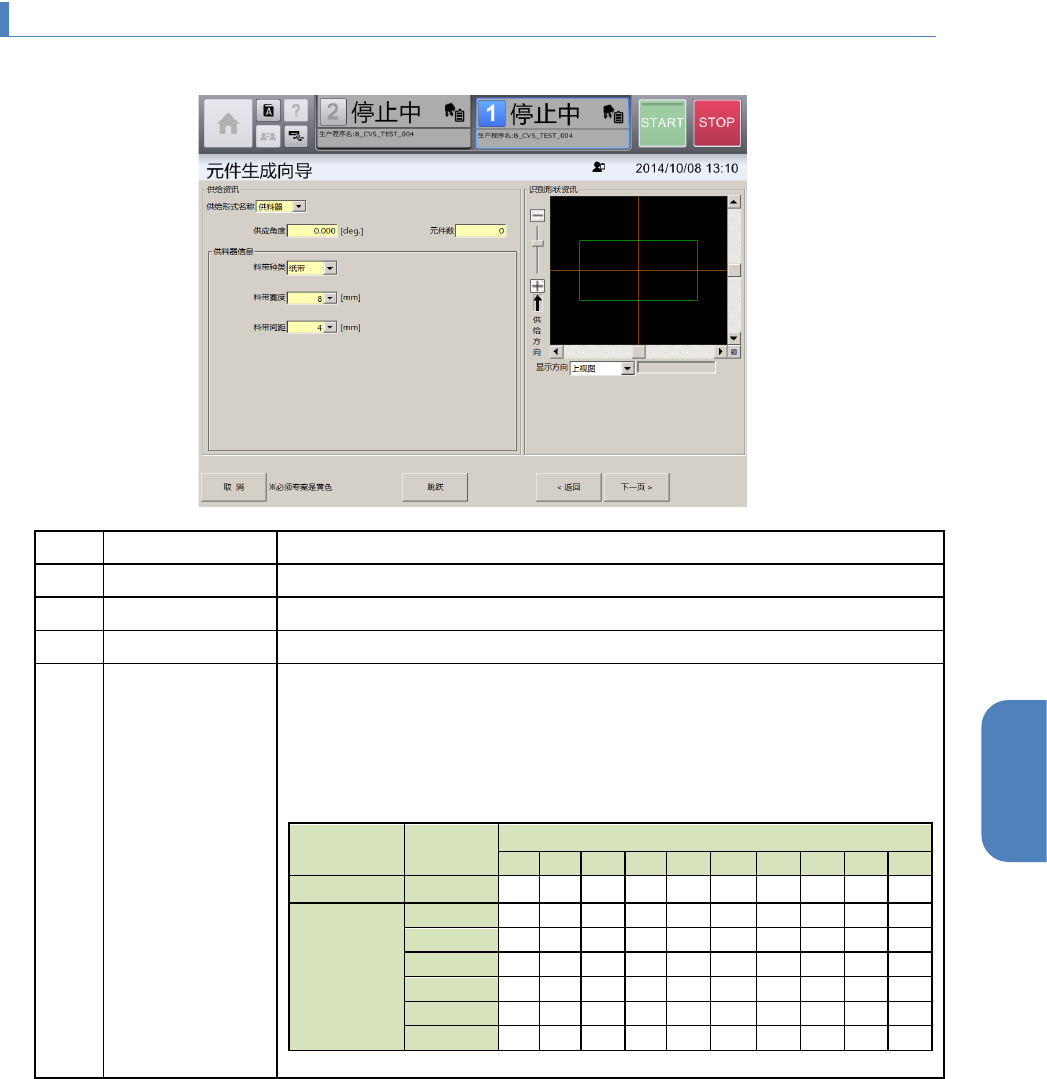 • 从供料器进行自动吸取时,必须在[基本信息]画面中已正确输入各项[元件长度(横)]、[元件长
