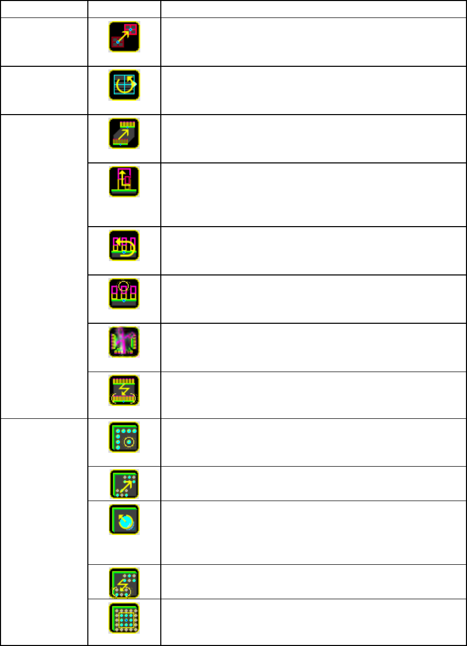 第 4 章 操作篇 4- 13. 元件生成向导 241 4 对象 按钮 说明 在以椭圆范围指 定的范围内, 将球设置到 [ 球号码 ] 中选择的球参数 指定的范围内的 球配置位置上 。 将球设置到 [ 球号码 ] 中选择球参数的 所有球配置位 置上。 将 [ 球号码 ] 中选择球参数的所 有球配置位置 的球清除。 本体 ( 异形 ) 显示 用于追加本体顶点的编辑 标记。 触摸取得图像上 的本体的顶点 位置新建顶点,或触 摸边上显示的 白…