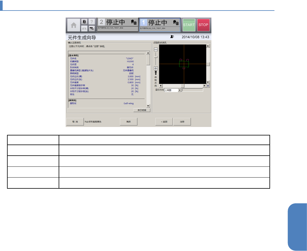 第 4 章 操作篇 4- 13. 元件生成向导 252 4- 13 - 8. 元件废弃 画面 在 [ 吸取、废弃 ] 画面中吸取元件后, 为了进行元件 的废弃,会再次显示 [ 吸取、废弃 ] 画面 的 [ 元件废弃 ] 选项 卡。 记号 名称 说明 (a) 废弃方法 通过下拉列表选 择元件的废弃 方法。 • 废 弃盒:自动将 元件废弃到废弃盒。 • 手动废弃:手动 从吸嘴将元件 取下。 (b) 废弃执行 废弃吸取的元件 。 在 [ 废弃…