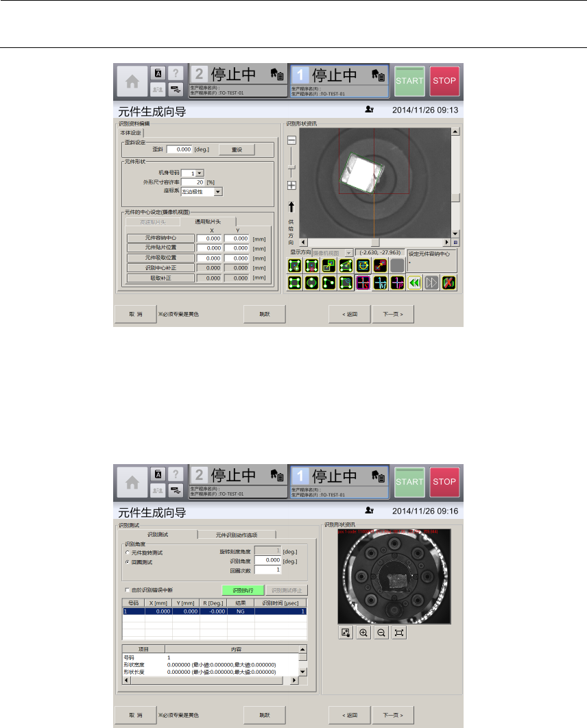 [识别测试]选项卡,可在[吸取、废弃]画面中吸取有元件时,使用[识别资料编辑]画面中制作的元