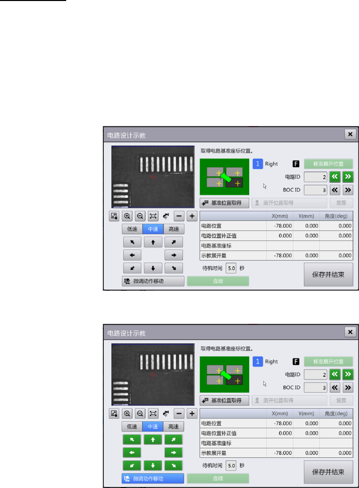 摄像机图像中有贴片位置的示教点时进行十字标记操作,其他情况下进行微调移动。