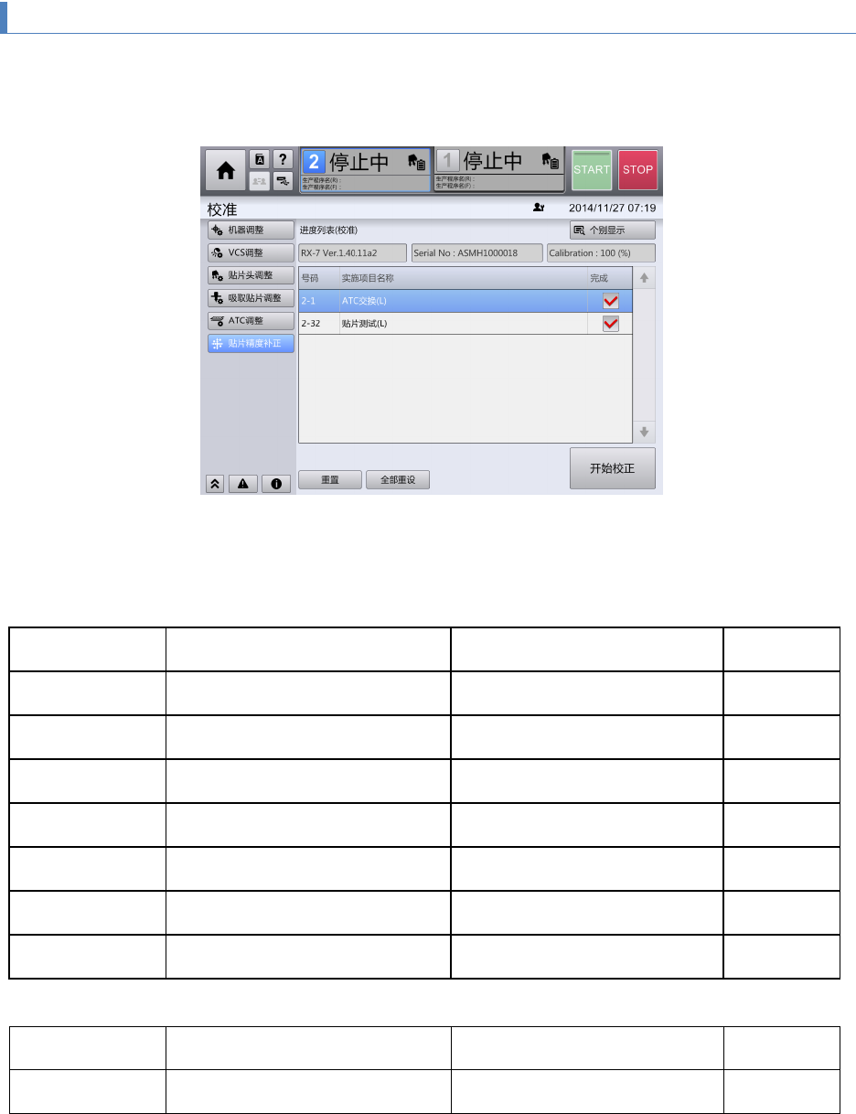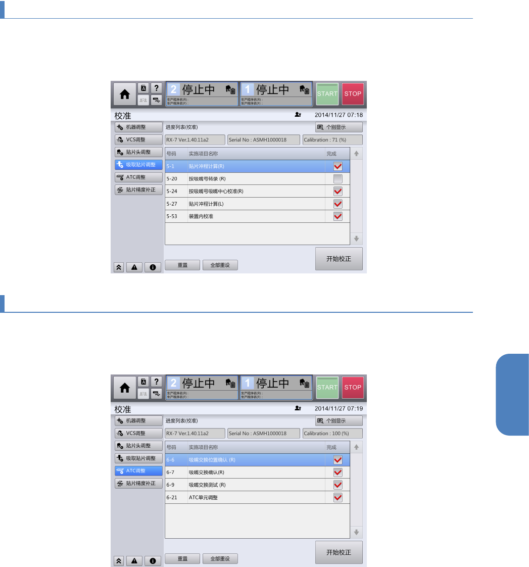 在[ATC 调整]画面中,可对本机的贴片头进行相关的校准。