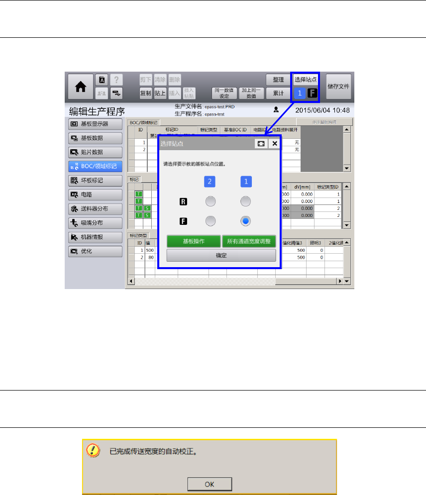 在[选择站点] 对话框中,触摸[所有通道宽度调整]按钮,即对传送通道的宽度自动调整。调整正常完成