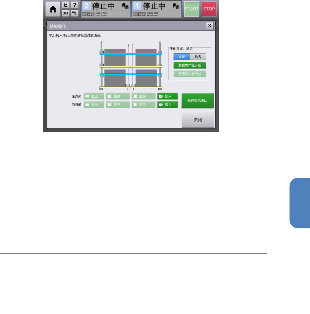 使用[所有通道宽度调整] 按钮,以及[基板操作] 按钮,可进行后述的传送通道的操作。