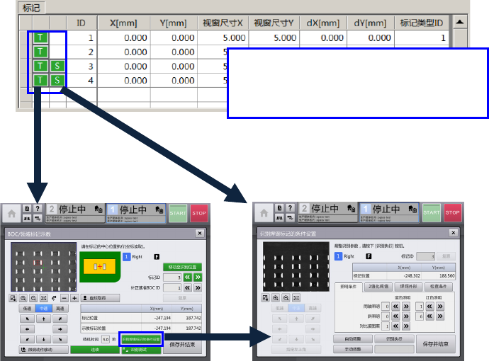 有关[BOC/领域标记识别测试] 对话框请参见「4-15-3 标记示教」。