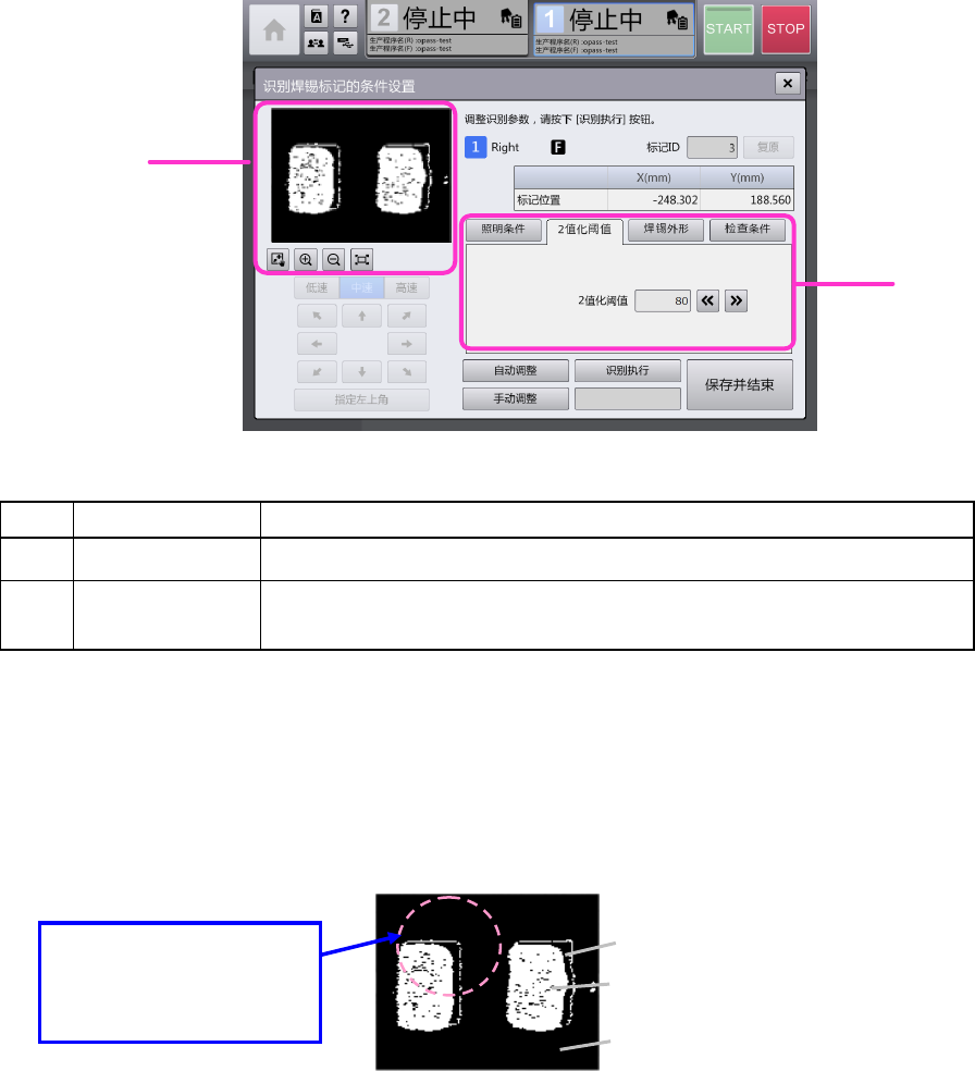 一边观察 OCC 监视器,一边调整 2 值化阈值,仅使焊锡的部分明亮可见。