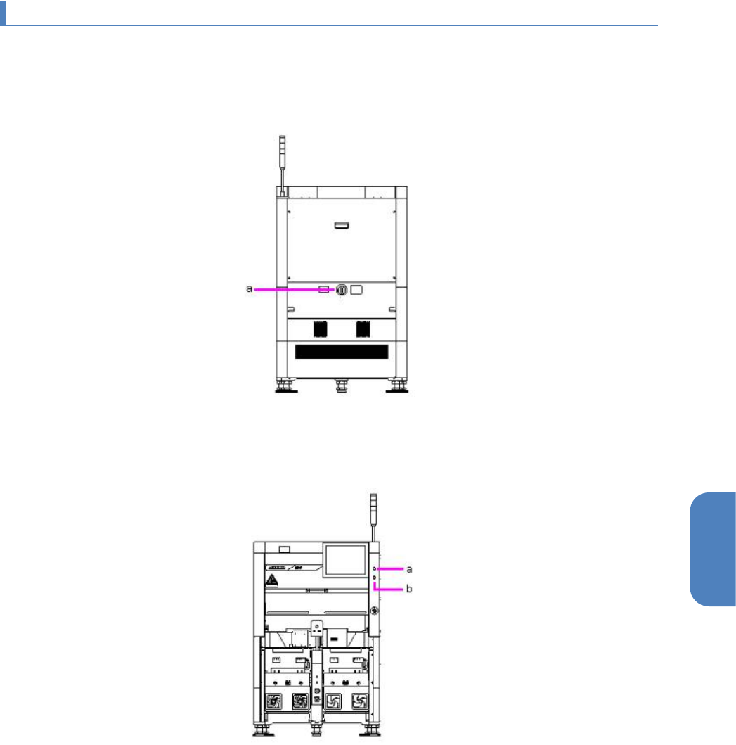 第 4 章 操作篇 4- 1. 系统的操作 3 4 4-1- 2. 接通电源时的步 骤 1 确认本体内没有障碍物。 请确认是否存在 妨碍各轴移动 的障碍物。 2 将主断路器设为 ON 。 (a) 主断路器 3 按下 PO WE R ON 开关(|)。 ( a ) POW ER ON 开关 ( b ) POW ER OFF 开关 本机启动,屏幕 上显示 [ 生产 ] 画面。 4 确认气压。 请从本机正面上 方的小窗确认 SUPPLIED …