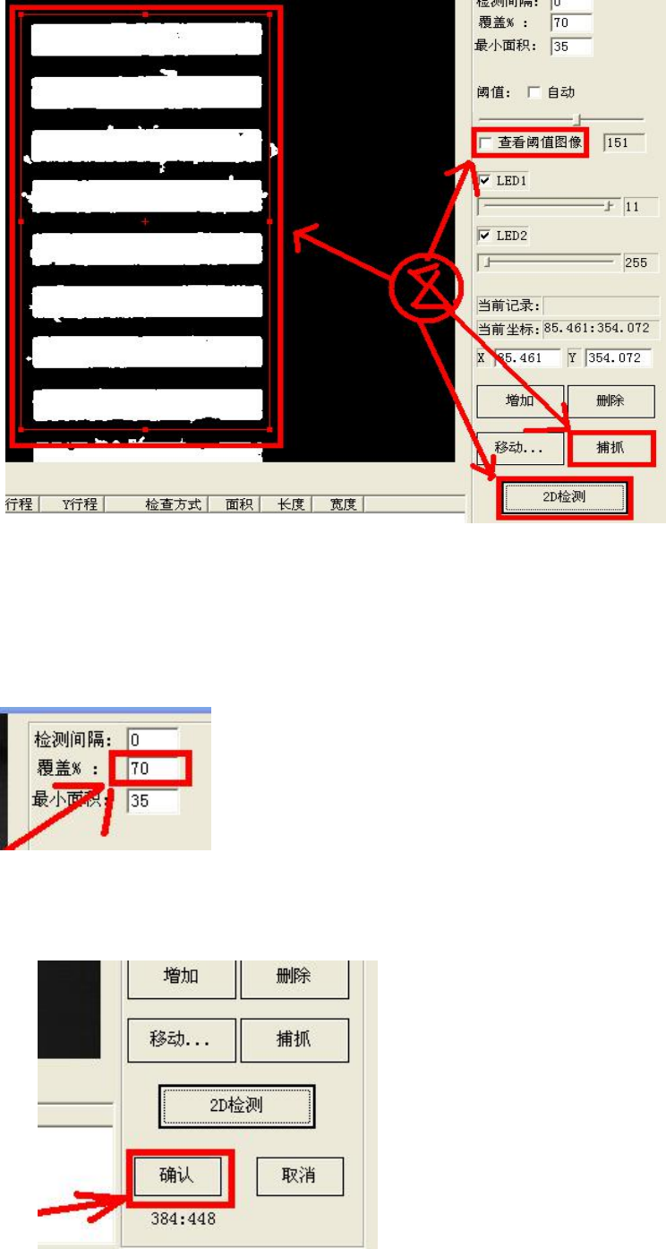 .取消查看阈值图像选项,点击捕抓,手动捕抓下要检测的点,然后点击