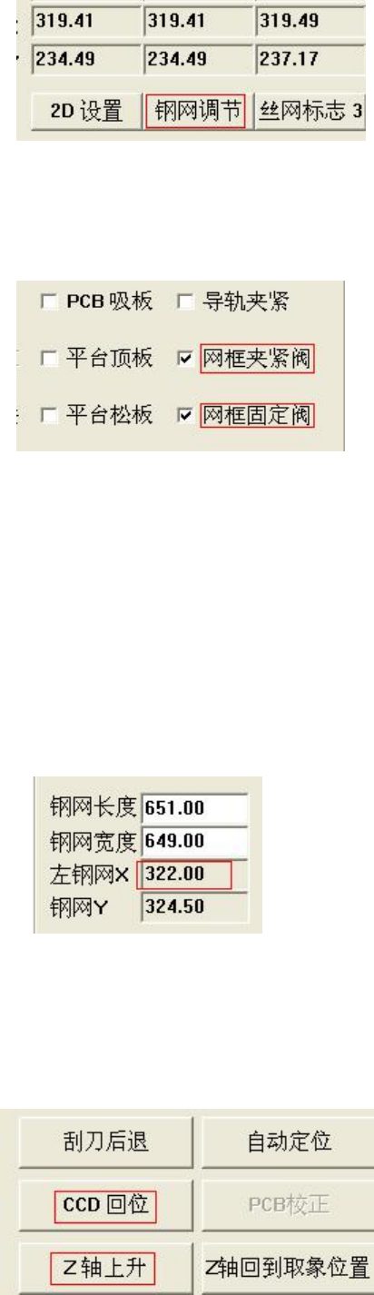 方向只要把钢网推到档钢网气缸处即可然后点击“网框固定阀”将钢