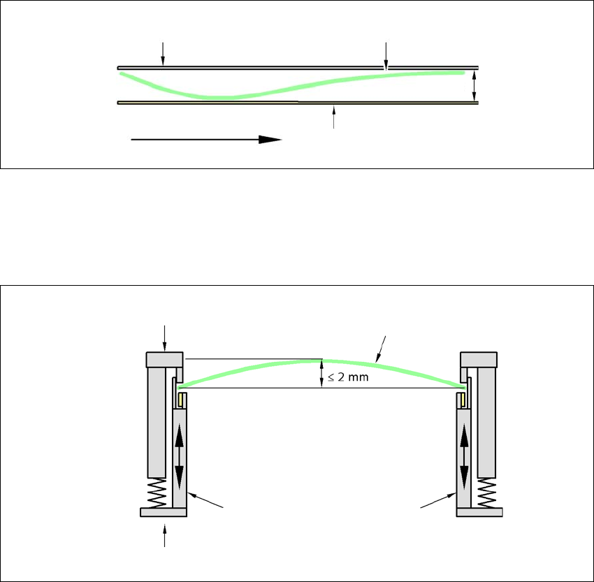 行程方向的 PCB 曲度 + PCB 厚度 < 5.5 mm