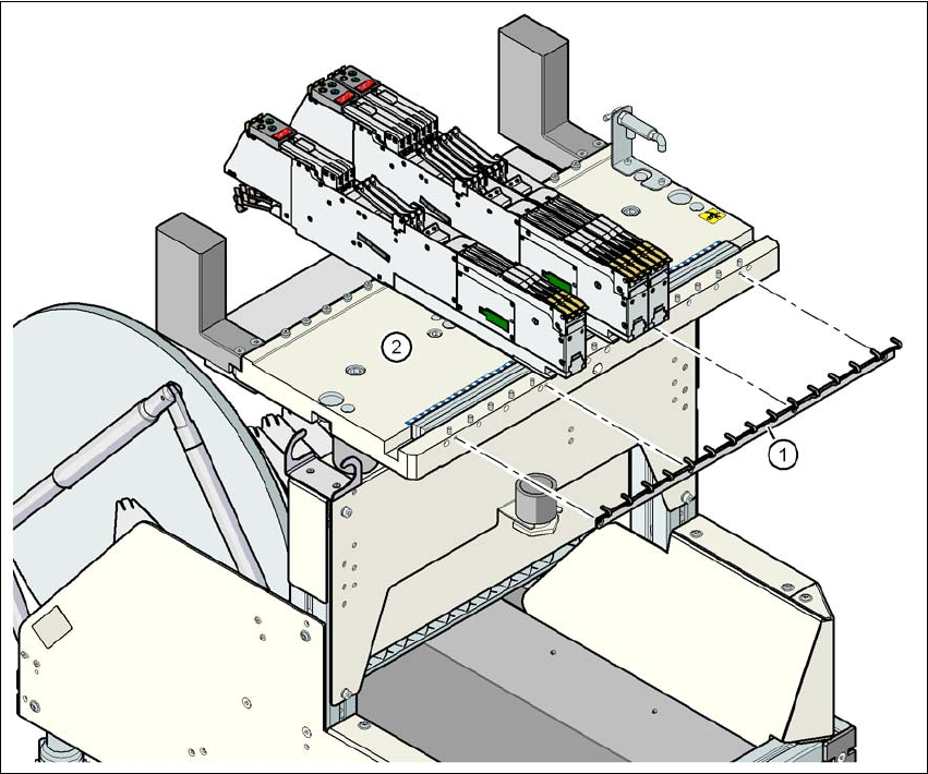 用戶手冊 SIPLACE D1/D2 3 取置機的技術資料 源自軟體版本 SR.605.xx 07/2008 英文版 3.11 料站台車 183 3.1 1.9 廢料帶滑槽 3 圖 3.1 1 - 12 廢料帶滑槽 廢料帶滑槽連接到料帶切斷器上 。廢料帶被料帶裁斷器切碎 滑到廢料帶滑槽,並進入料 站台車的 廢料帶容器。