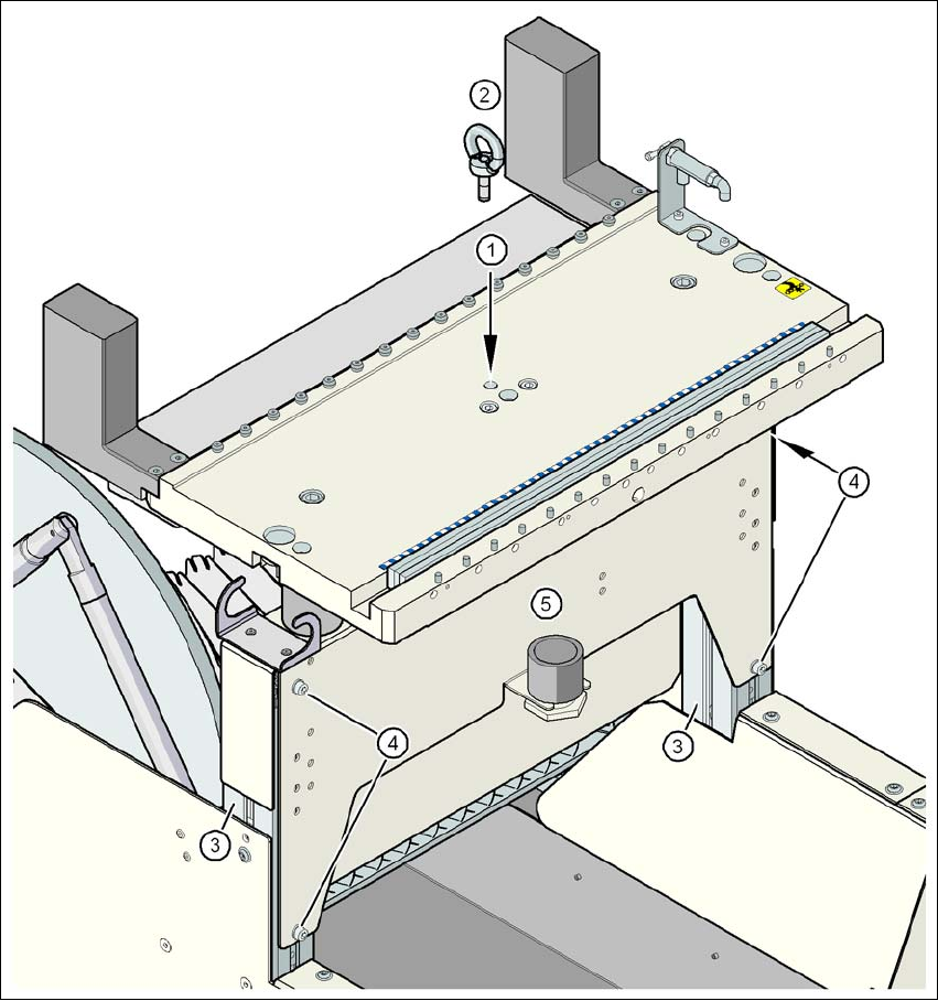 → 將環首螺栓擰進取置機料站台車平台底座裏的 M12 孔( 圖 4.4 - 1