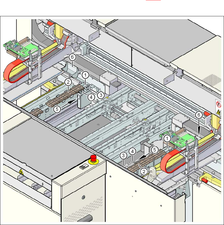 用戶手冊 SIPLACE D1/D2 6 工作站擴充 源自軟體版本 SR.605.xx 07/2008 英文版 6.1 吸嘴更換器 263 6.1.1.3 D1 取置機上 C&P12 取置 頭吸嘴更換器的位置 12 段位器收取置放頭的吸嘴更換器可以安裝到料位 2 (圖 6.1 - 2 中的第 1 項) 。 這樣, 總容量可 達 6 個吸嘴匣,共計 72 個吸嘴格。 6 圖 6.1 - 2 D1 取置機上 12 段位器收取置放頭吸…