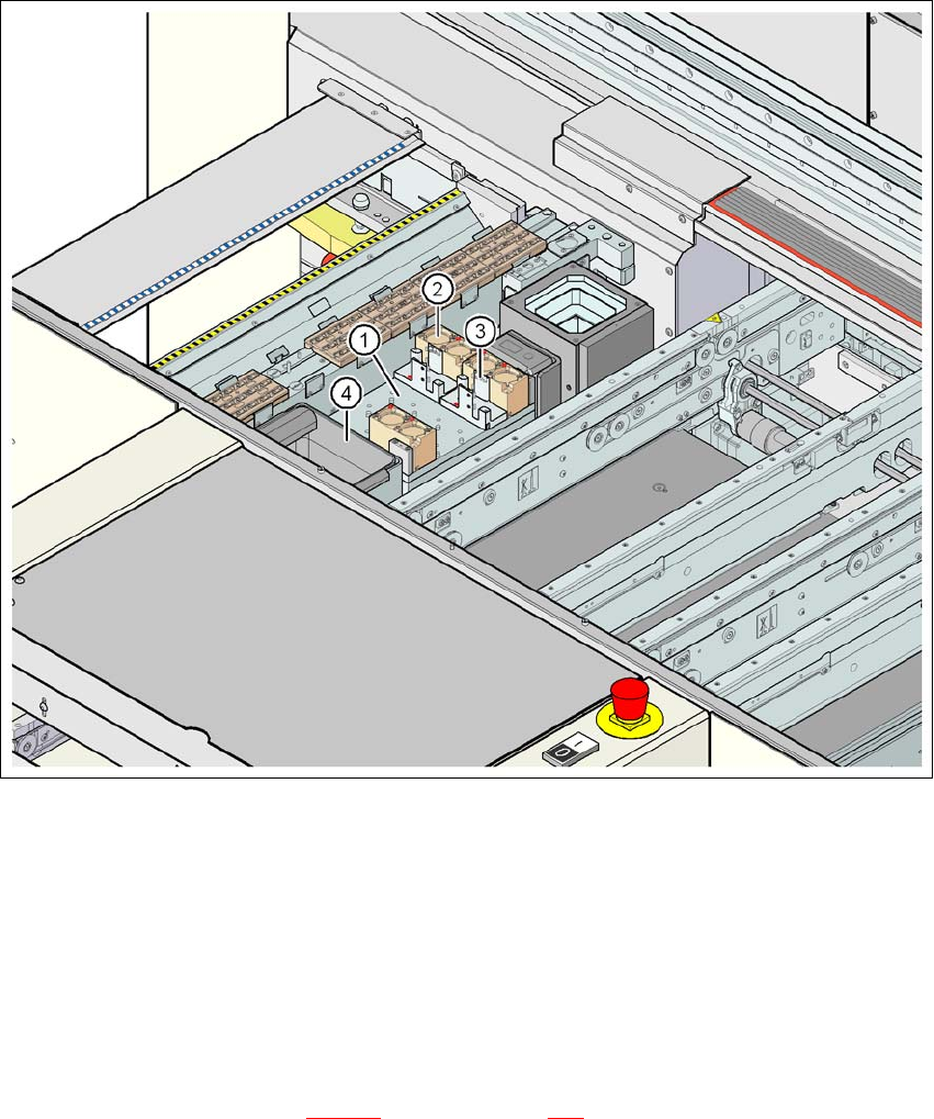 用戶手冊 SIPLACE D1/D2 6 工作站擴充 源自軟體版本 SR.605.xx 07/2008 英文版 6.1 吸嘴更換器 277 6 圖 6.1 - 12 D1 取置機上拾取取置頭吸嘴更換 器的位置 (1) 吸嘴更換器 (2) 標準吸嘴匣 (3) 特殊吸嘴或夾爪匣 (4) 元件回收筒 6 6.1.3.4 組件 吸嘴更換器被固定到料位 2 ( 圖 6.1 - 12 中的第 1 項,第 277 頁 ) 的取置機機架上。 6.1.3…