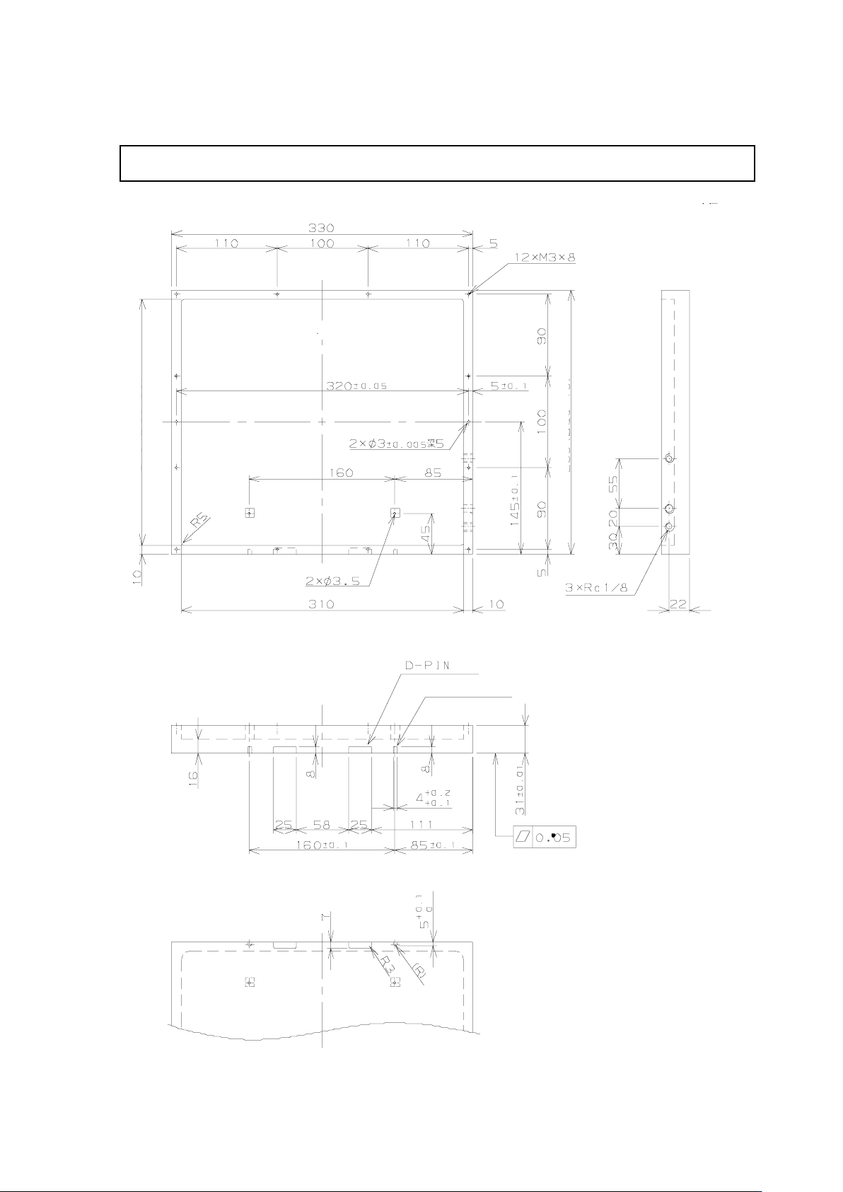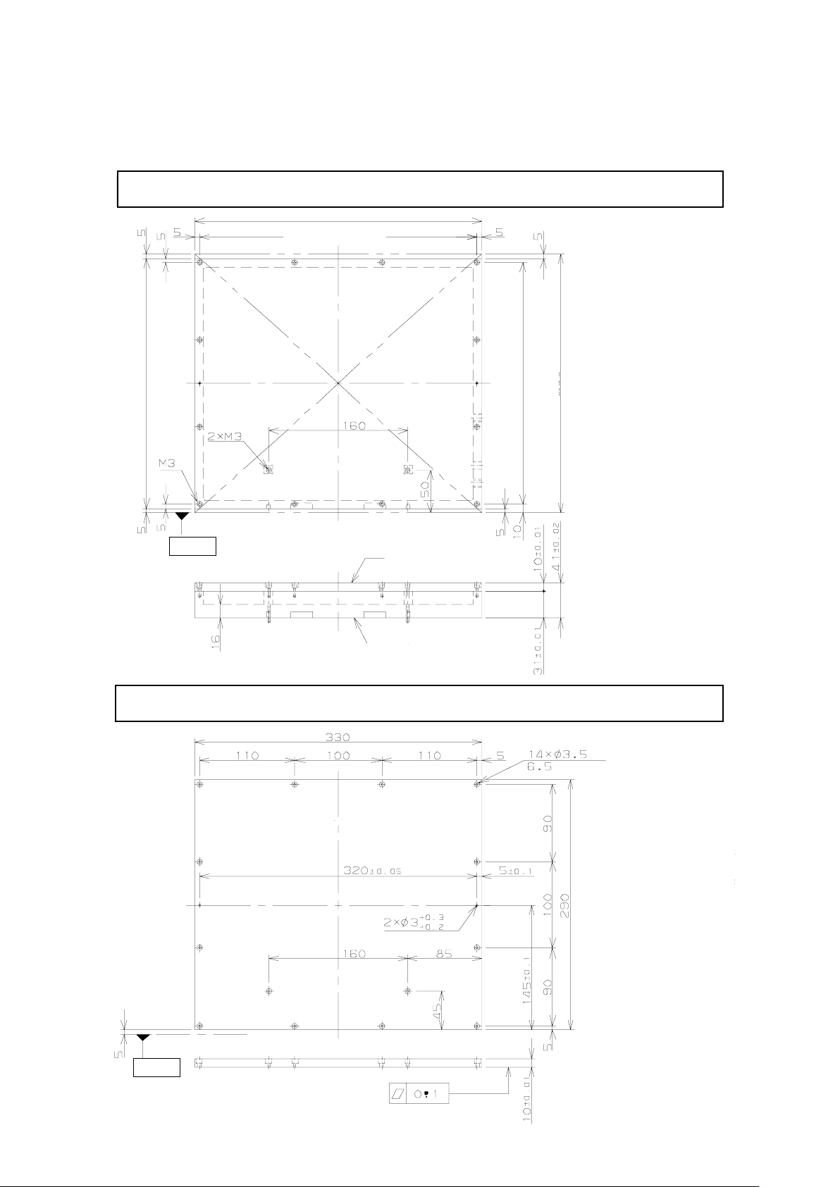 NPM-GP/L 202 2.0 928 - 105 - ■ 基板 吸着 箱设计例 ② (只使 用真 空泵 吸引 ) ( 单位 : mm) (组装 图) (上板 图) 基本规格尺寸 ( 真空泵 吸引 规格 ) 上板设计例 ( 真空泵 吸引 规格 ) ( 单位 :mm) ( 单位 :m m ) 箱长 安装间距 (100 前后 ) 安装间距 (100 前后 ) 吸着箱宽 ( 基板宽 -10) 基板宽度 传送基准 上板 箱体 传送基准 埋头孔…