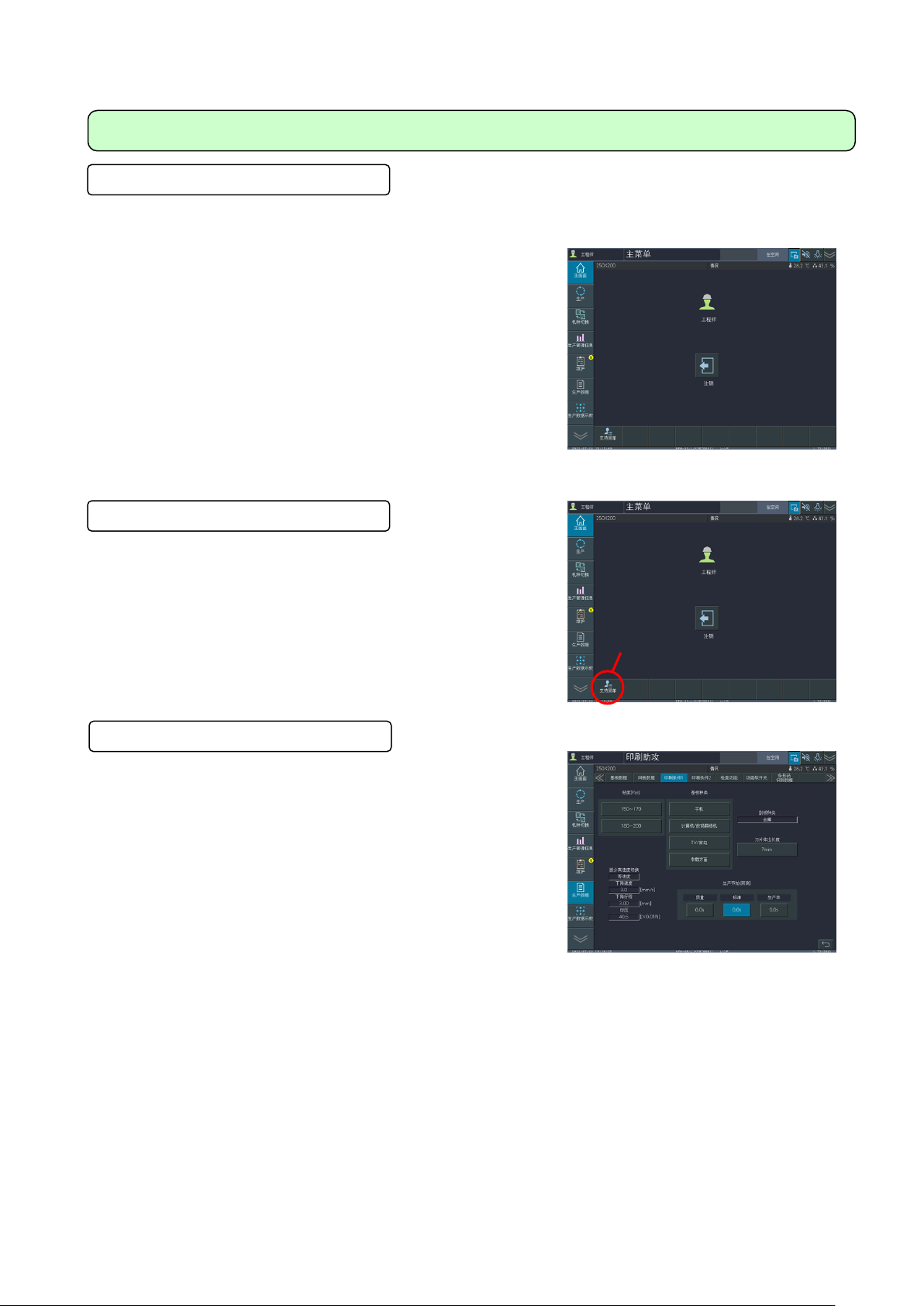 将操作画面分为操作员・工程师・维护人员各模式,