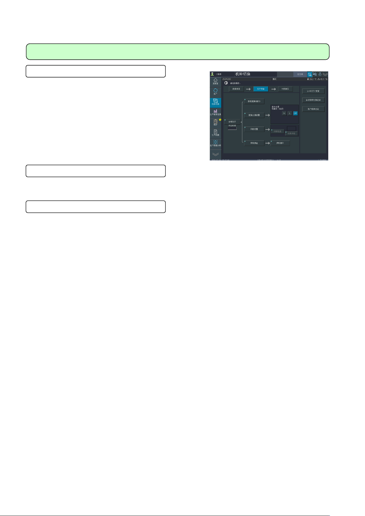 支援准备交换作业(生产数据的切换、轨道宽度的切换),并将因机种切换造成的作业损失控制到最低。