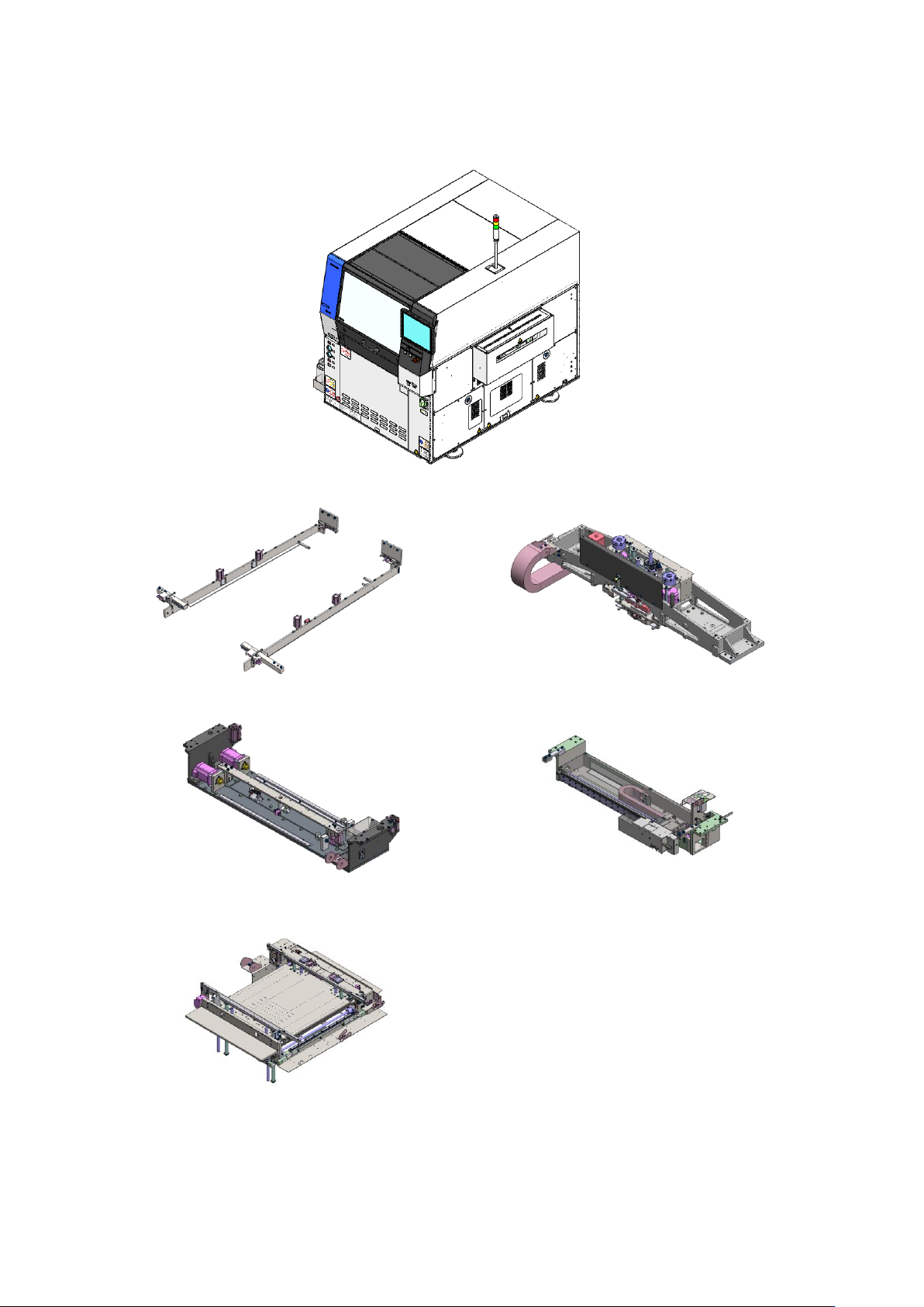 NPM-GP/L 202 2.0 928 - 15 - 4. 机器构成 4.1 整体图 4.2 各种单元 通用网板支架 ( 选购件 ) 多功能刮刀头 网板清 洁单 元 识别单元 基板定位升降部