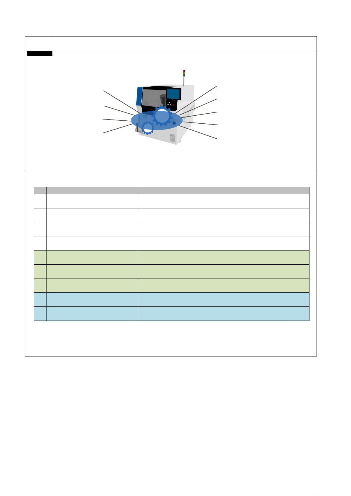 NPM-GP/L 202 2.0 928 - 73 - C-5 希望监控 5M 变化,安定生 产。 On -site APC - 5M ( 许可证 ) ■ 设备状态监控(预防 ・ 预知保全) 项目名 内 容 1 运转距离监控 监控轴动作部的运转距离,在合适的时间通知维护。 2 基板传送状态监控 监控基板传送时间,通知传送带清扫等等的维护。 3 照相机状态监控 生产开始前确认照相机镜头是否有污垢。 检测出有污垢时,将通知清扫。 4 鼓风机…