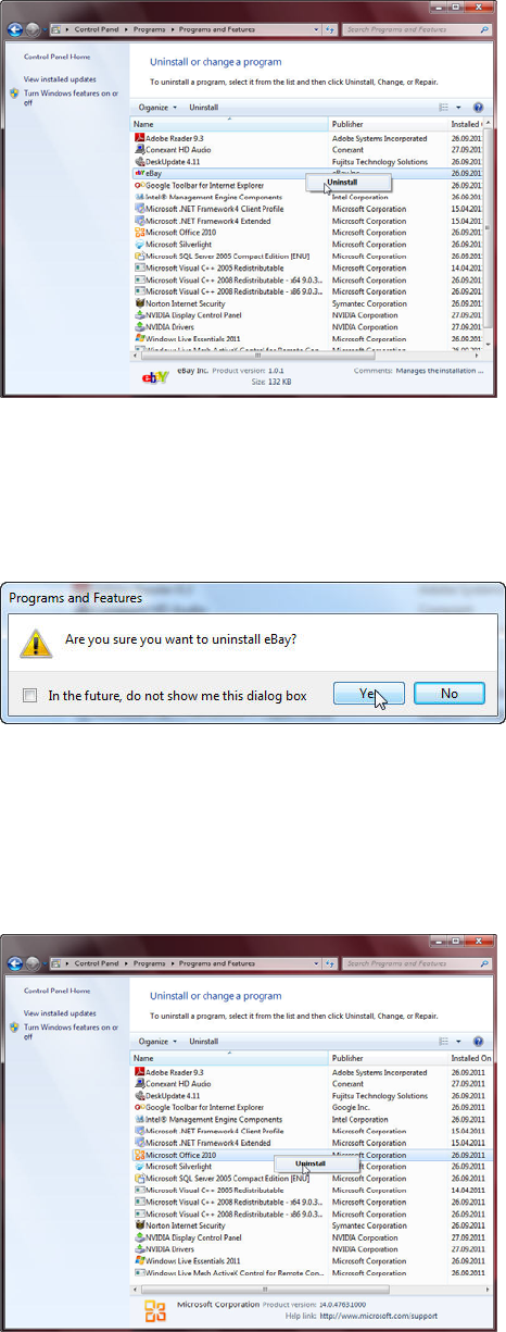 Figure 3-22: Uninstalling Ebay – Step 1
