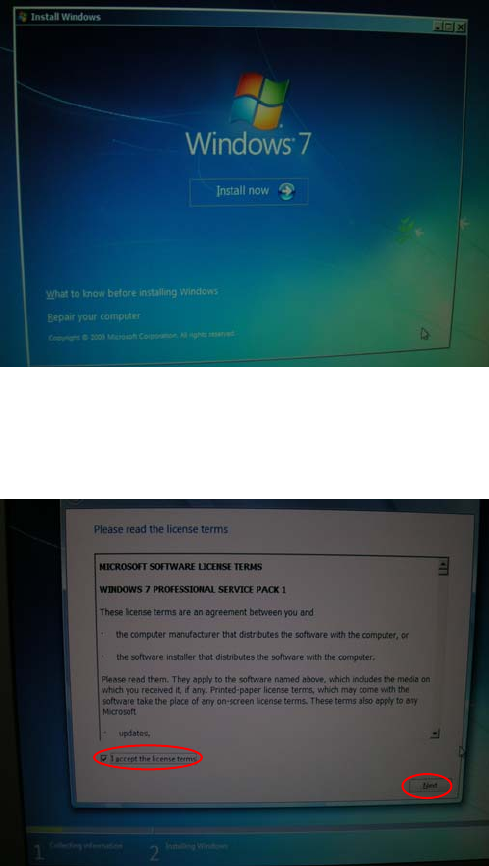 Celsius W510 with Win dows 7 10/2011 Edition The following window ap pears. Figure 4-8: Install Now ► Click the Install now button. The following window ap pears. Figure 4-9: License Agreement ► After reading the license…