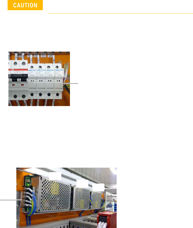 8 Fit the new Omron 20 A AC/DC power supply into the DIN rail and lock it.