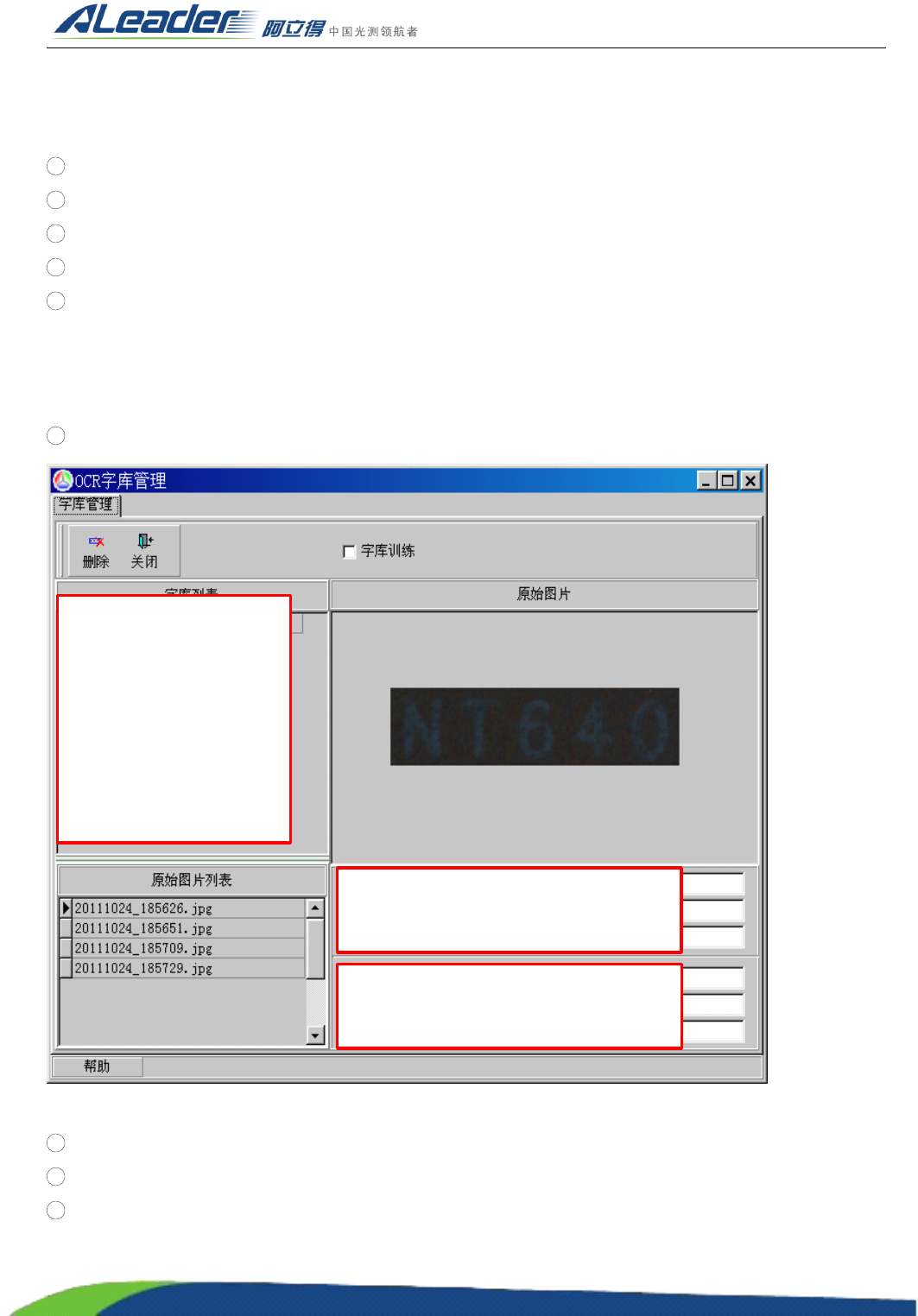 1 字符库区域:已训练的字符库。其中字符库的名称的长度不超过 2 。
