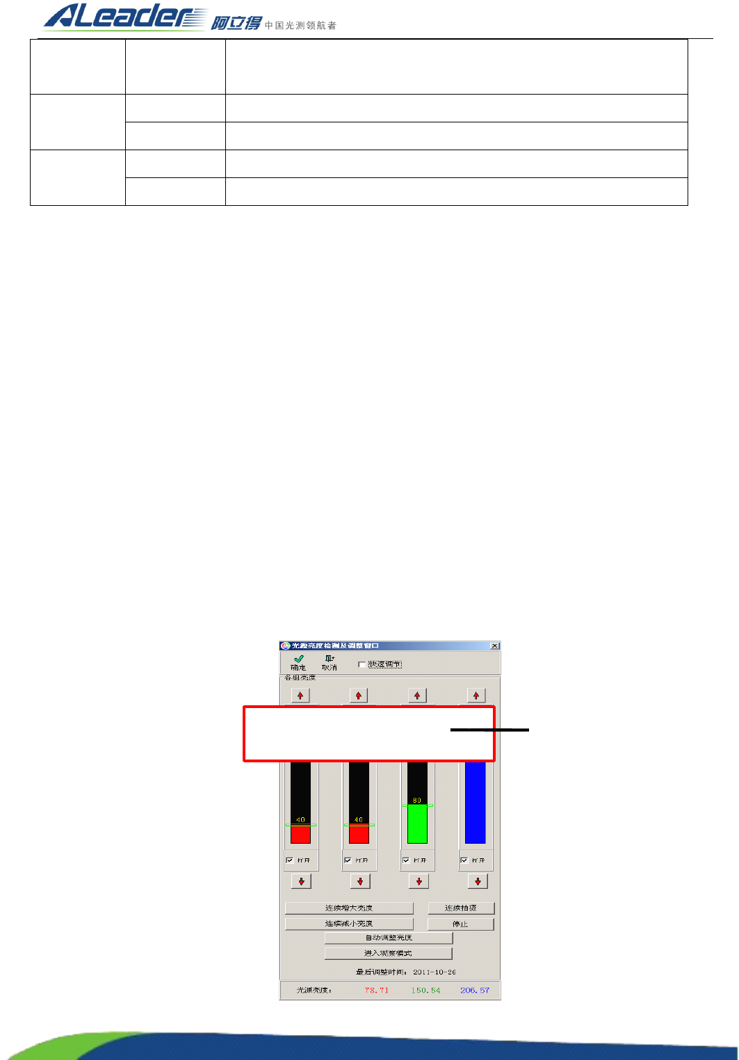 上图为炉前的光源标准,炉前从上而下的光源分布依次为红、红、绿、蓝,光源亮度标准分别为 40 、 40