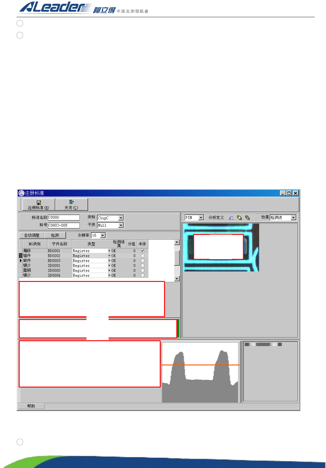 上图中 , 红色框为本体框 、 蓝色框为锡少框 ( 露铜框 ) 、 紫色框为错件框 、 白色框为缺件框 。 其注册窗体如