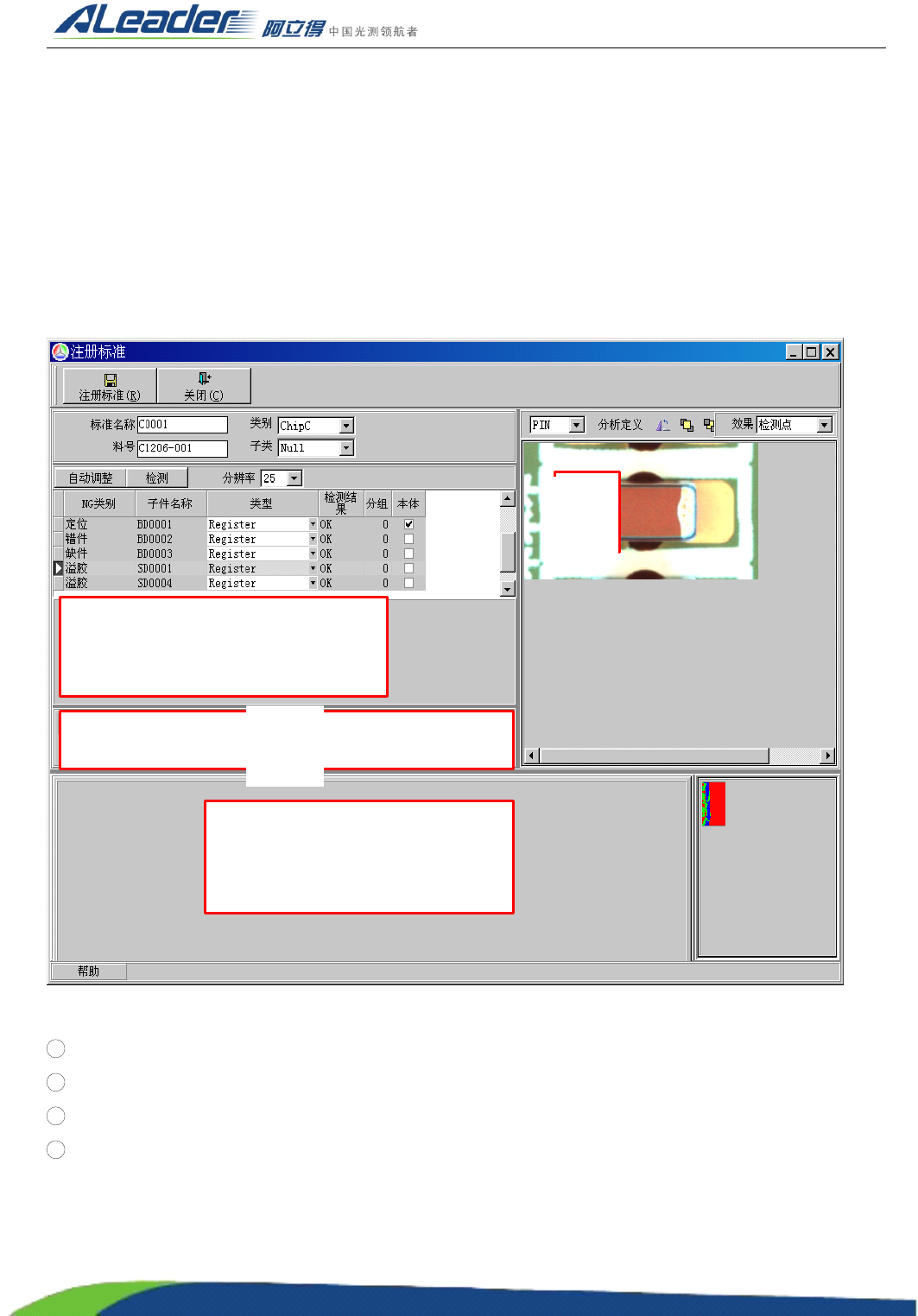 上图为 “ Glue ” 算法下的 “ 溢胶 ” 注册窗体,说明如下: