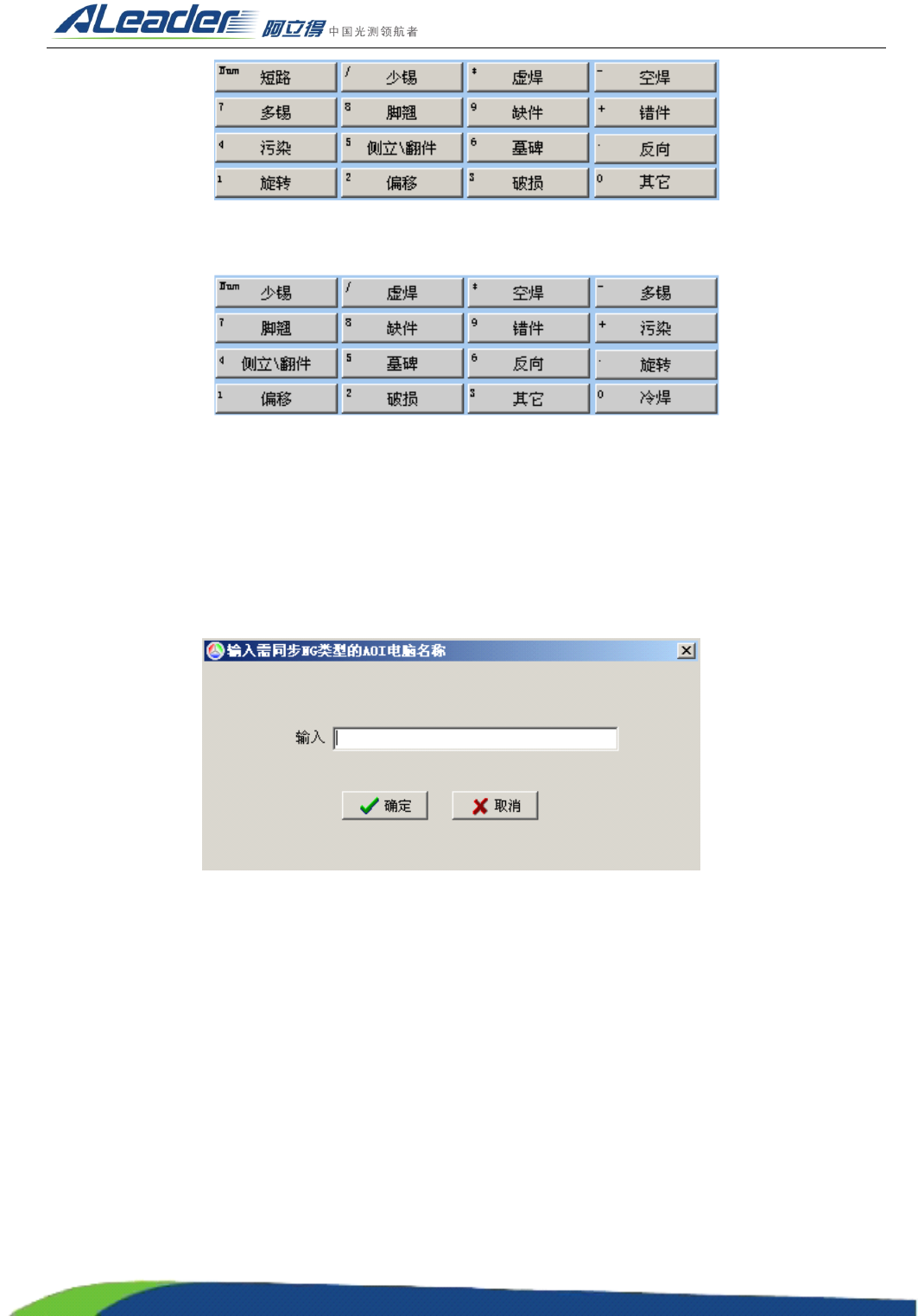 ⑶ 同步 NG :点击同步 NG 按钮后,会要求输入需同步 NG 类型的 AOI 电脑名称,成功输入后,本机