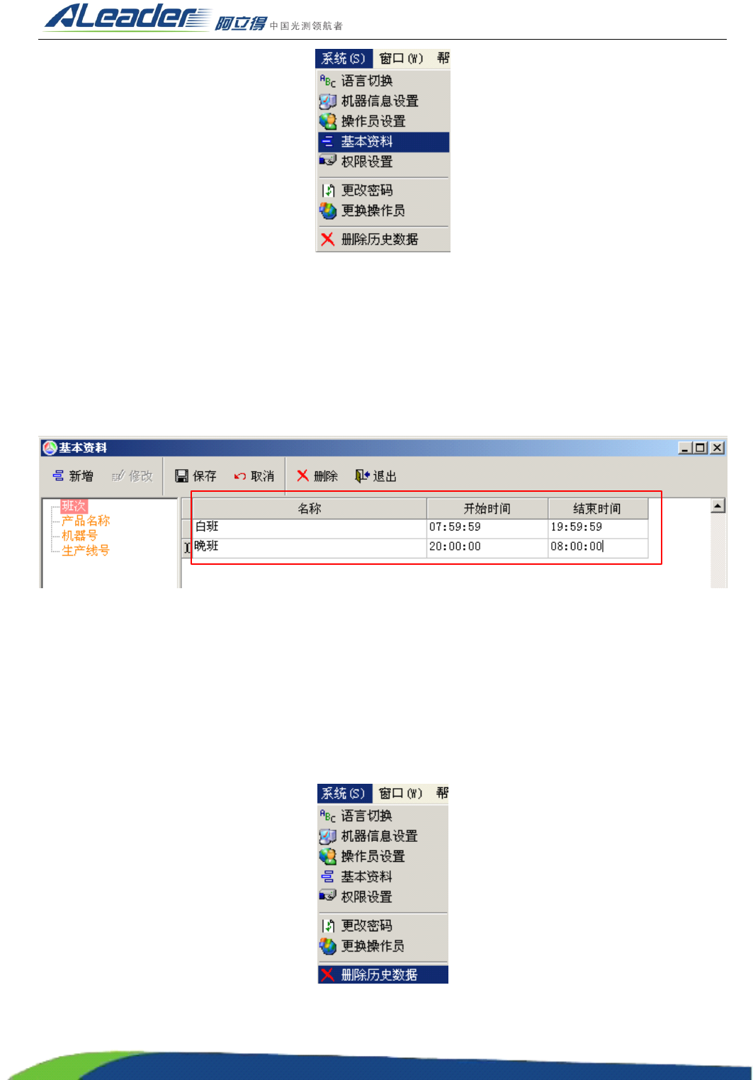 选择菜单 “ 系统 ” 栏下的 “ 删除历史数据 ” ,打开 “ 删除历史数据 ” 界面。