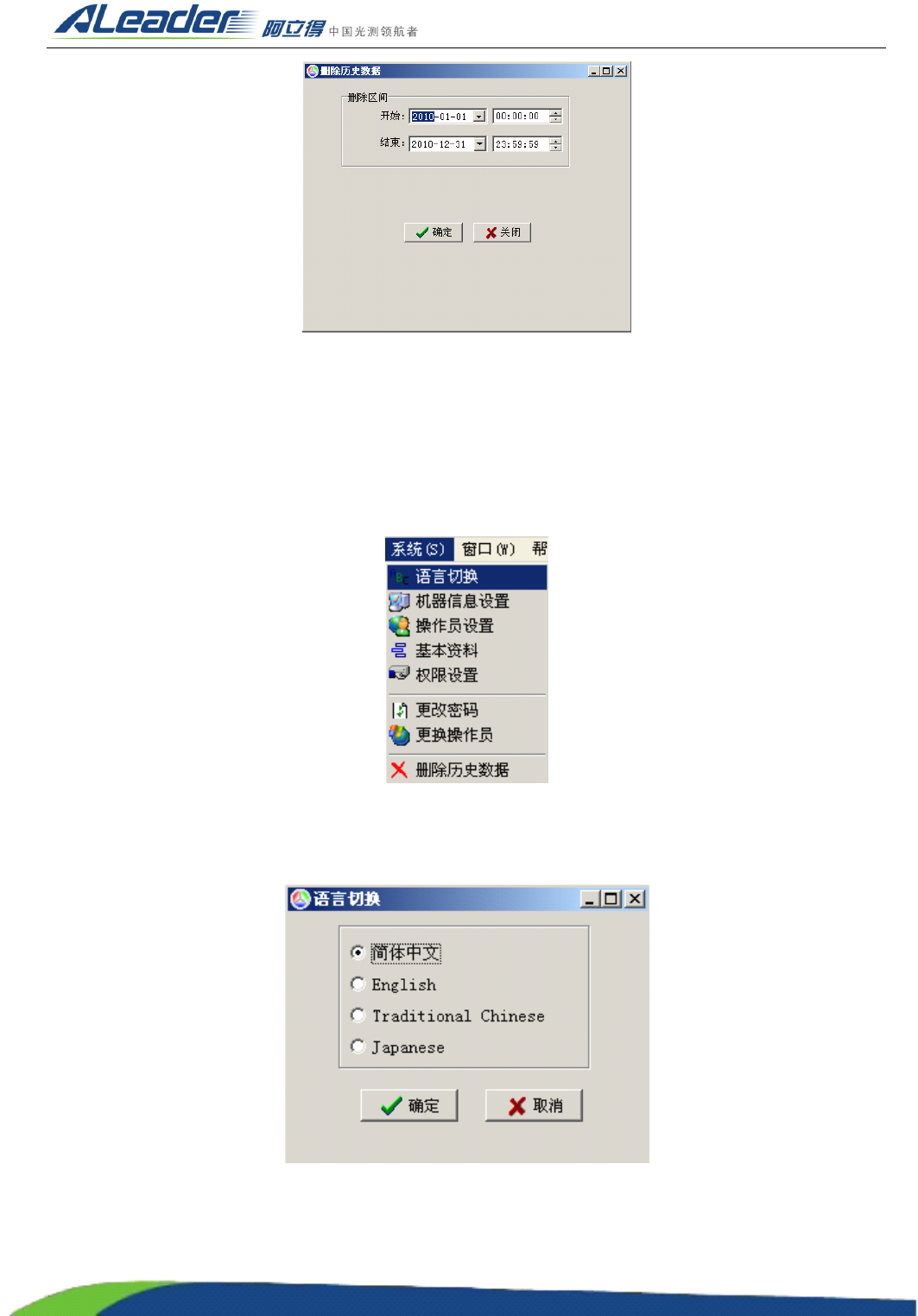 设定需删除的数据 “ 开始及结束时间 ” 进行删除。点击 “ 确定 ” 将根据所设定参数删除数据。