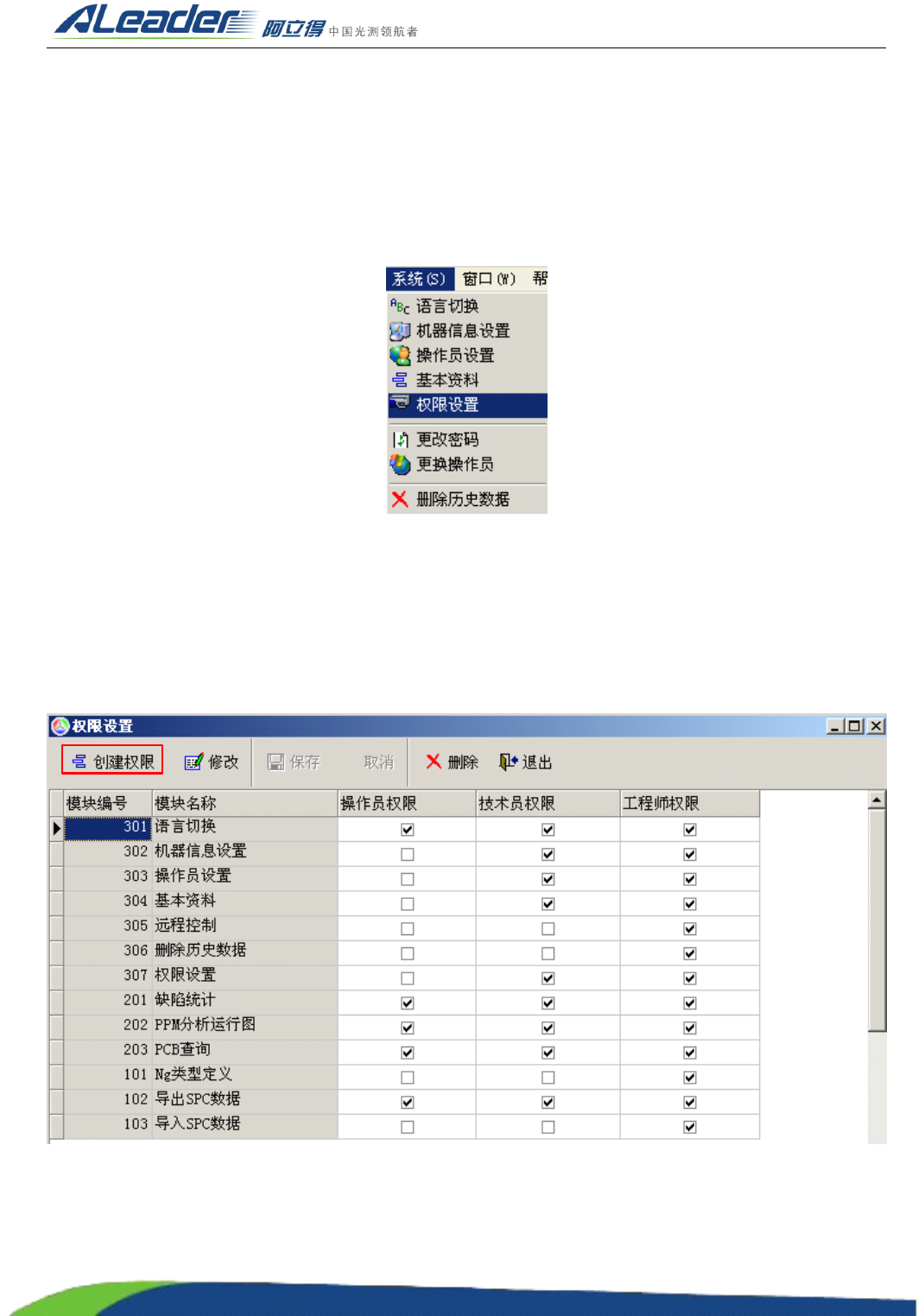 选择菜单 “ 系统 ” 栏下的 “ 权限设置 ” ,打开 “ 权限设置 ” 界面。